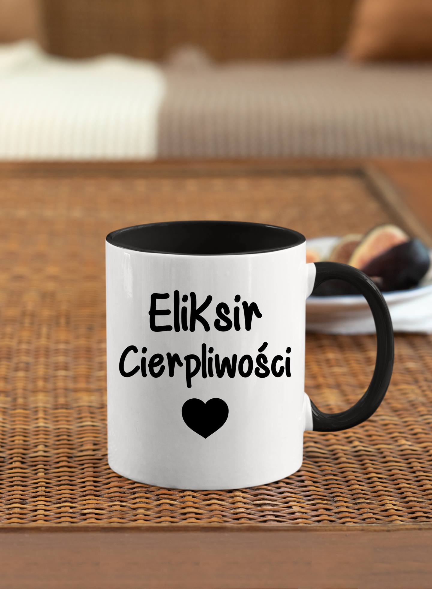 ✔️ Kolor kubka: biały z czarnym wnętrzem oraz uchem.