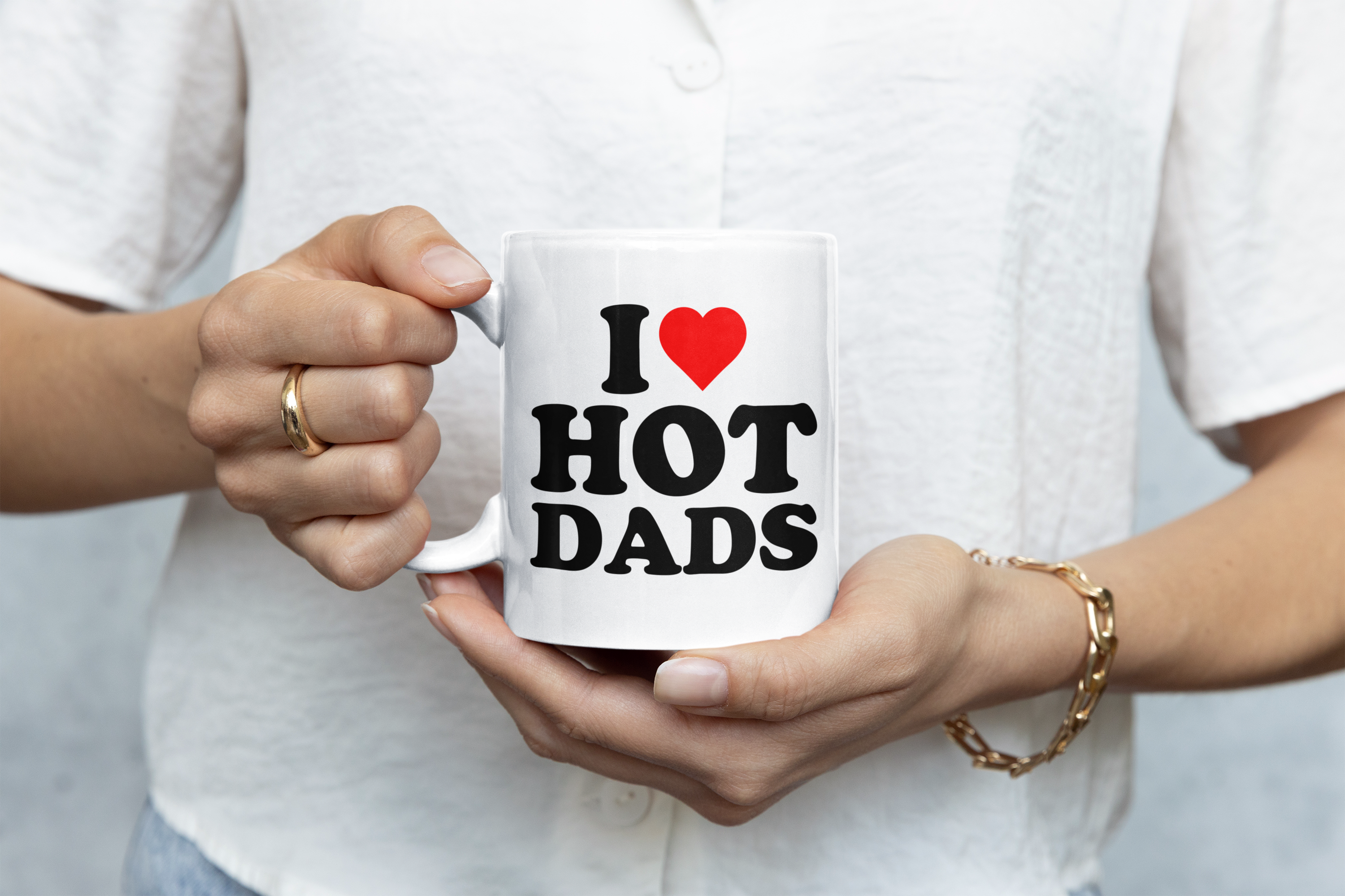 KUBEK I LOVE HOT DADS ZABAWNY ŚMIESZNY PREZENT URODZINY 330ml + OPAKOWANIE