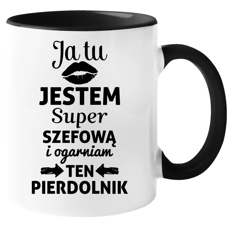 KUBEK JA TU JESTEM SUPER SZEFOWĄ PREZENT URODZINY ŚWIĘTA 330ml + OPAKOWANIE