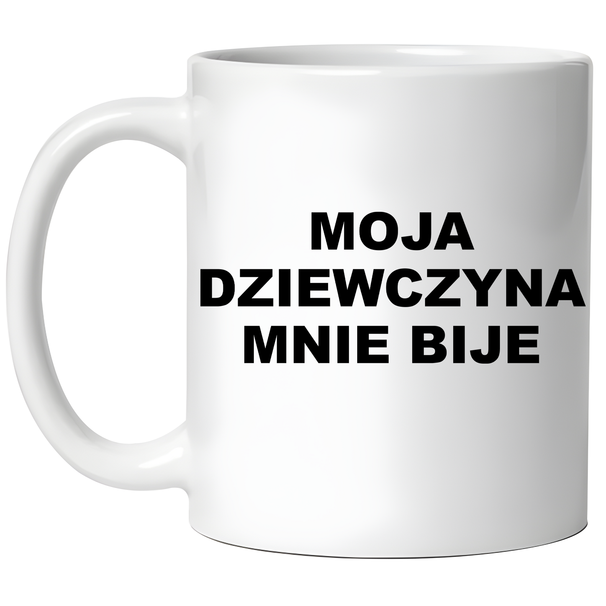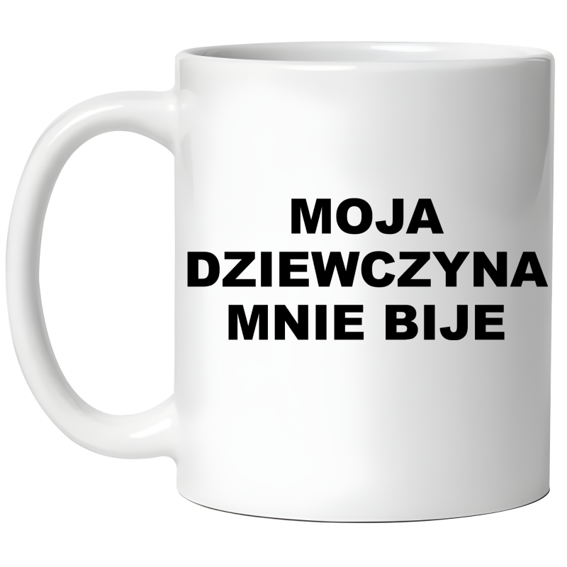KUBEK MOJA DZIEWCZYNA MNIE BIJE zabawny PREZENT na URODZINY ŚWIĘTA + OPAKOWANIE