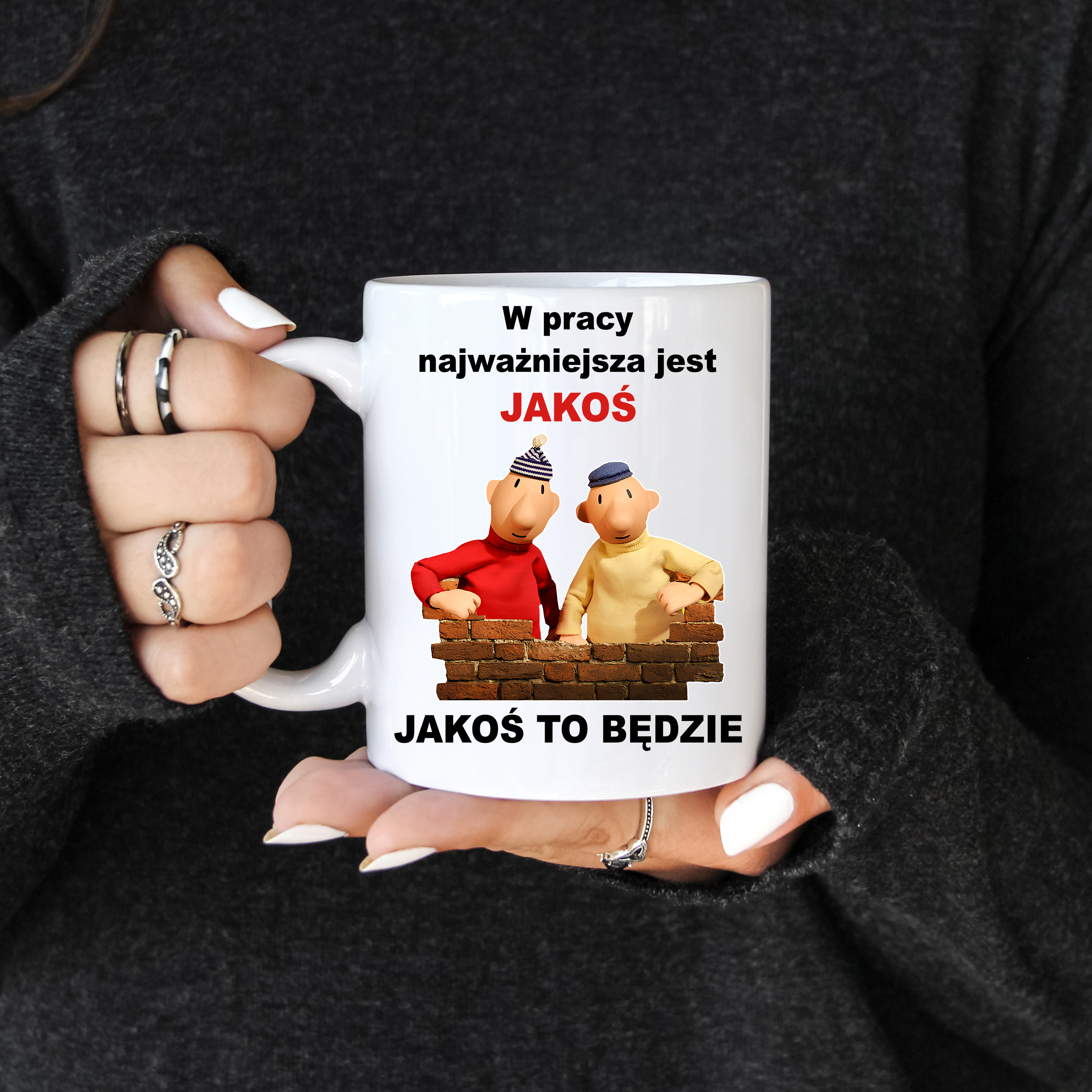 KUBEK SĄSIEDZI "W pracy najważniejsza jest JAKOŚ" zabawny PREZENT na URODZINY ŚWIĘTA + OPAKOWANIE
