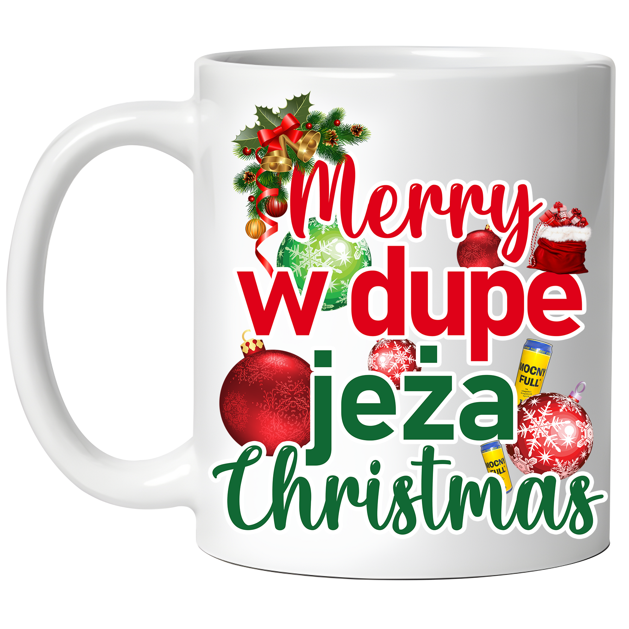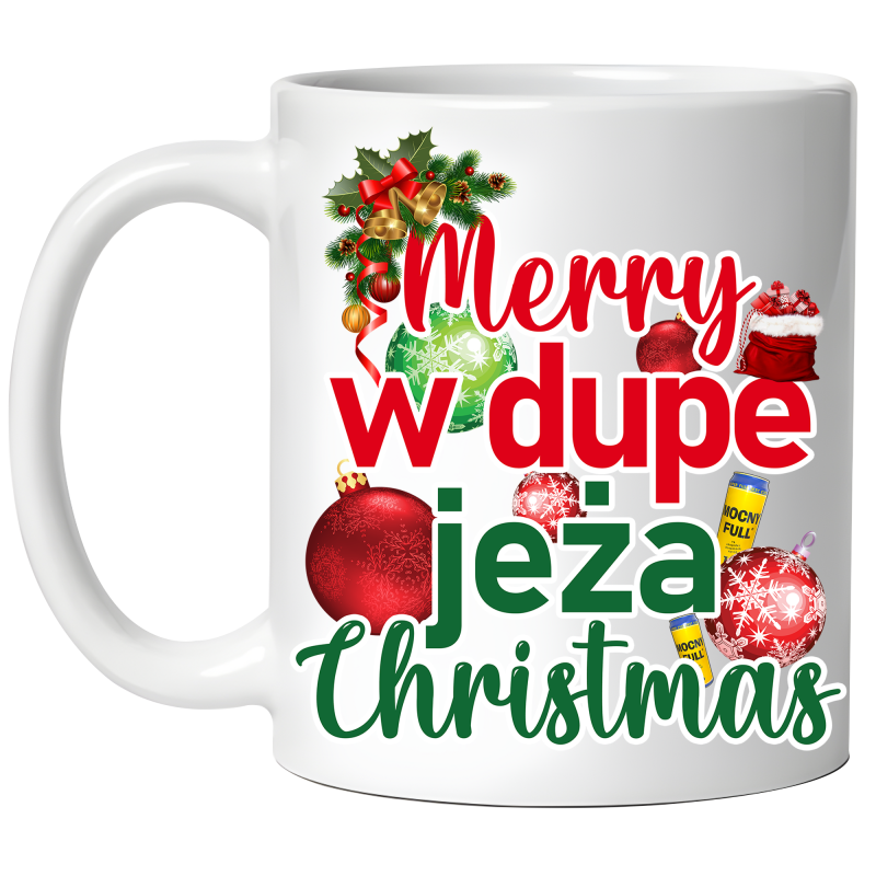 KUBEK świąteczny W DUPE JEŻA PAN BOCZEK śmieszny PREZENT 330ml + OPAKOWANIE