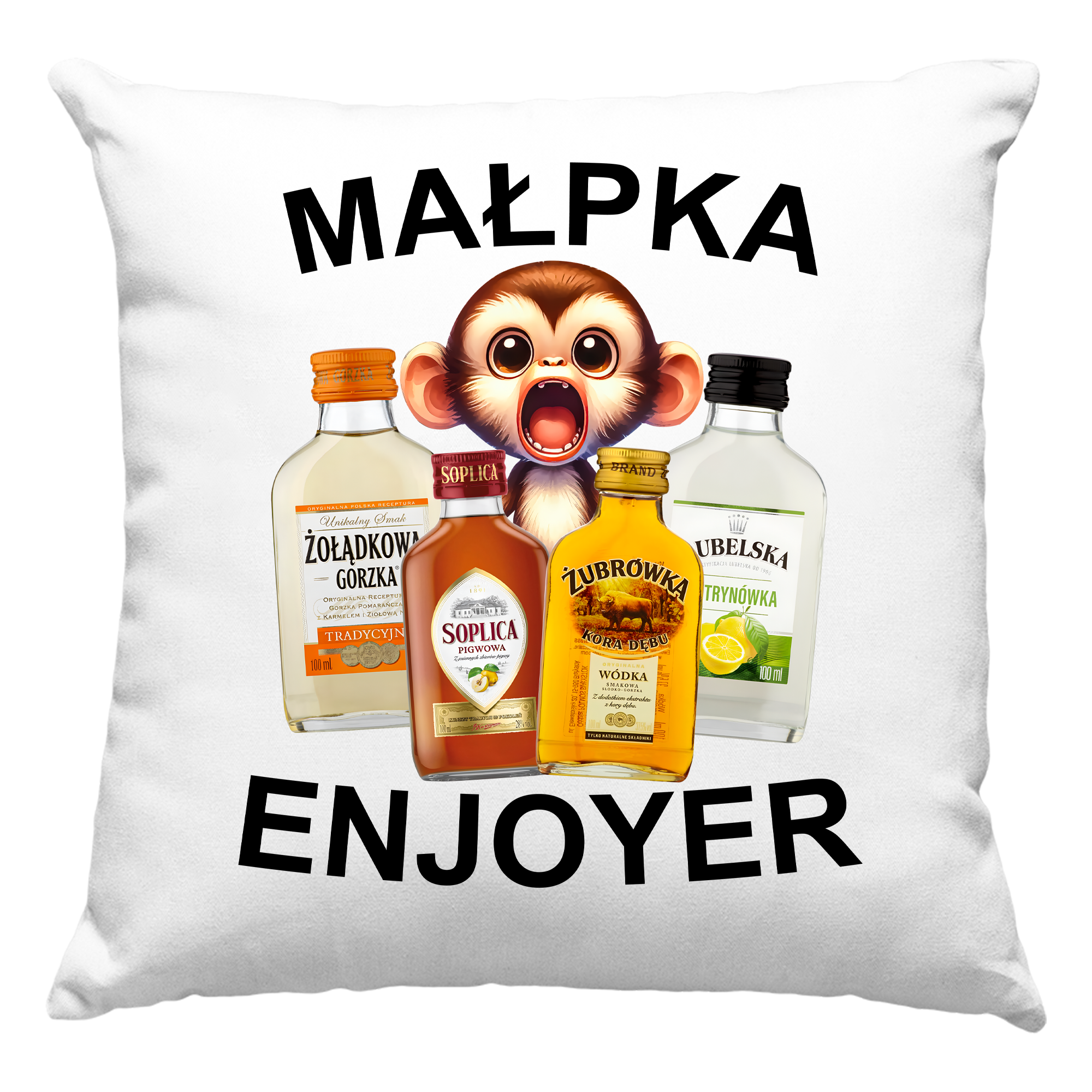 MAŁPKA ENJOYER Zabawna PODUSZKA + WYPEŁNIENIE 40x40cm na PREZENT