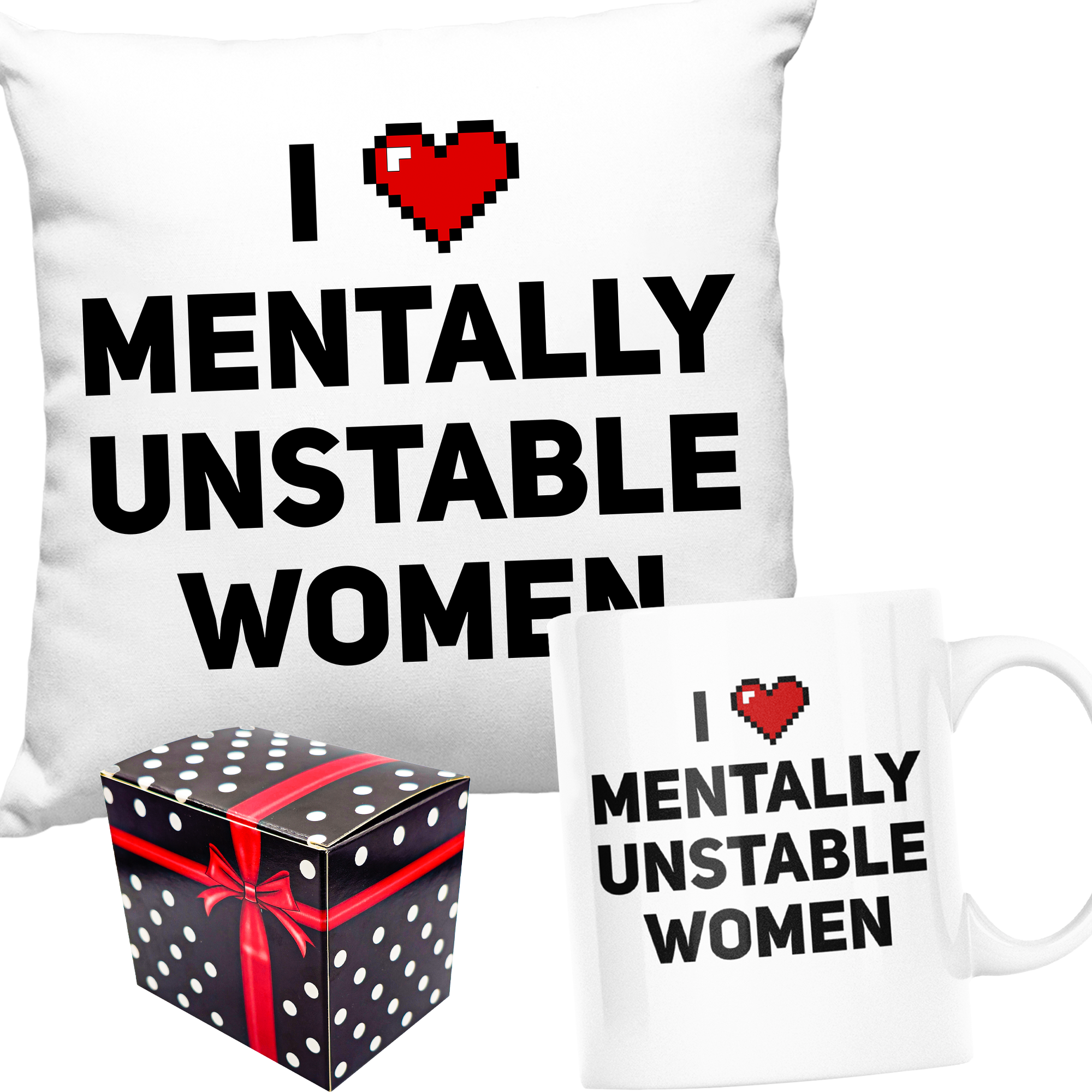❤️ZABAWNY ZESTAW PREZENT PODUSZKA + KUBEK I LOVE MENTALLY UNSTABLE WOMEN❤️