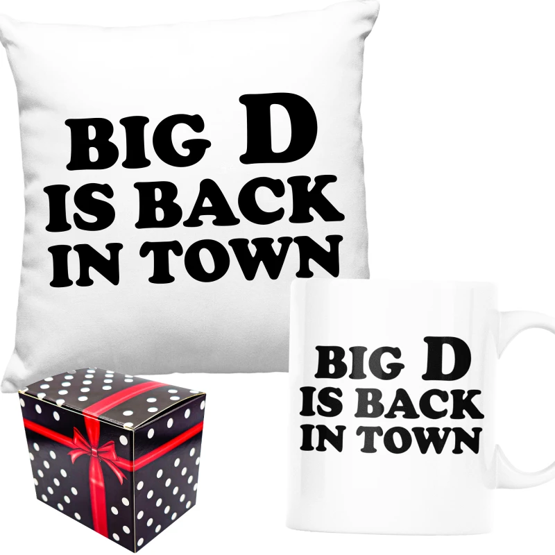 ZABAWNY ZESTAW PREZENT ŚWIĘTA PODUSZKA+ KUBEK BIG D IS BACK IN TOWN+PUDEŁKO