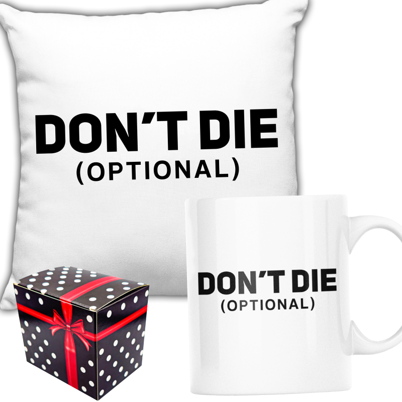 ZABAWNY ZESTAW PREZENT ŚWIĘTA PODUSZKA + KUBEK DONT DIE + PUDEŁKO