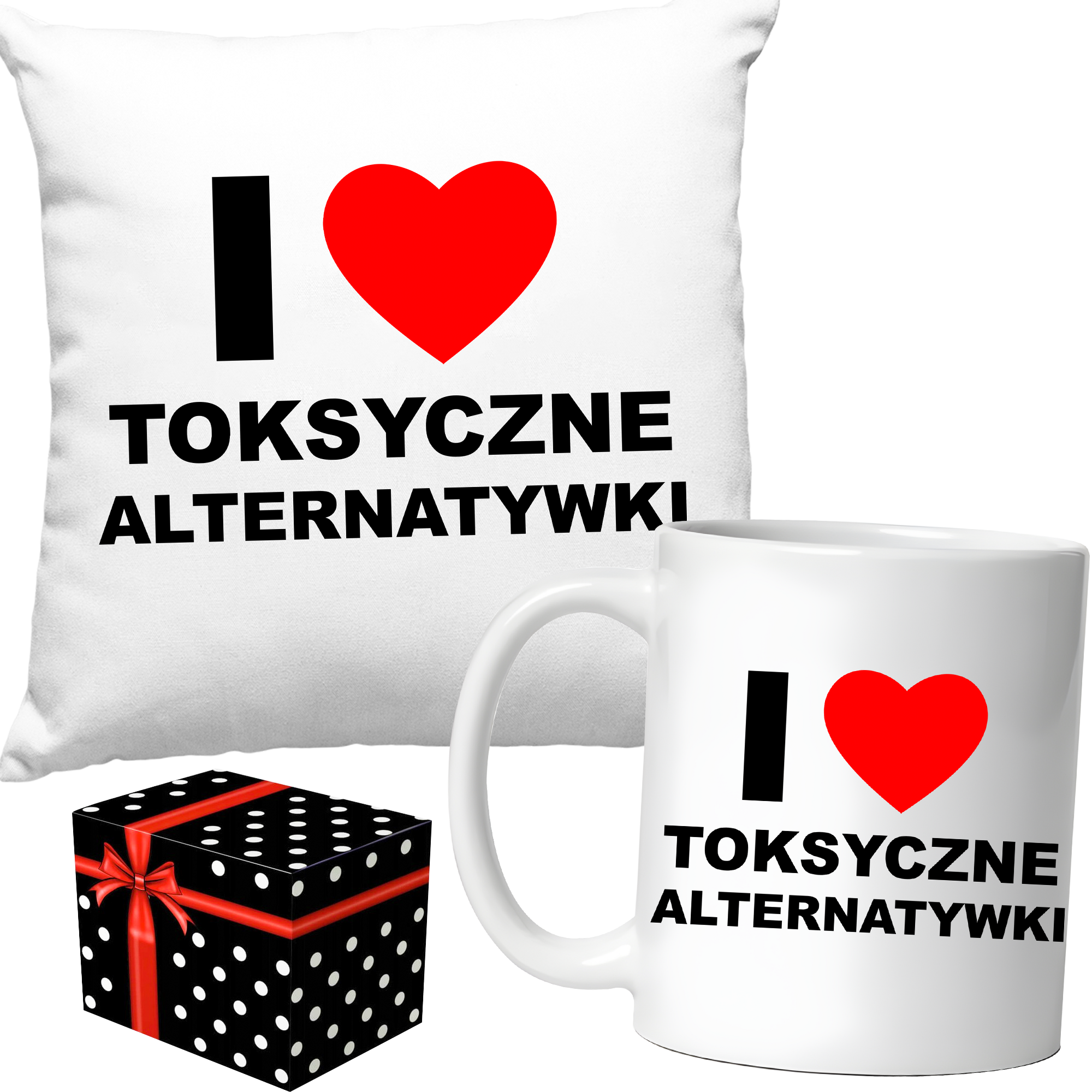 ❤️ZESTAW śmieszny PREZENT PODUSZKA + KUBEK TOKSYCZNE ALTERNATYWKI + PUDEŁKO❤️
