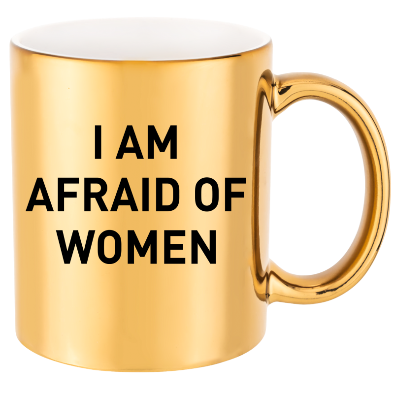 ZŁOTY KUBEK I AM AFRAID OD WOMEN zabawny PREZENT URODZINY ŚWIĘTA+OPAKOWANIE
