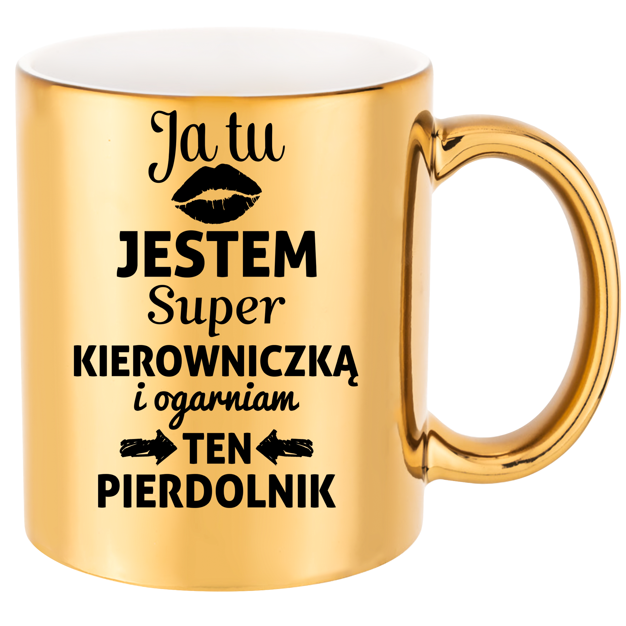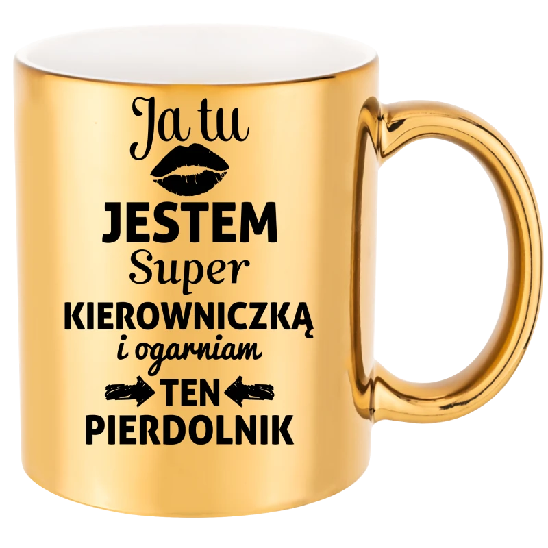 ZŁOTY KUBEK JA TU JESTEM SUPER KIEROWNICZKĄ PREZENT URODZINY 330ml + OPAKOWANIE