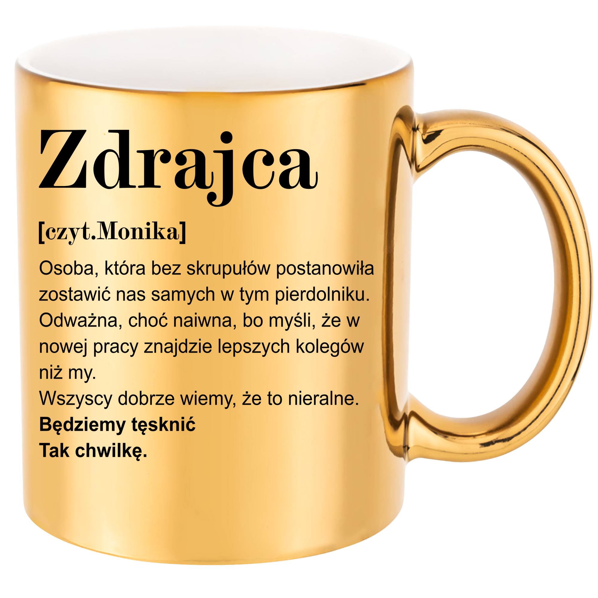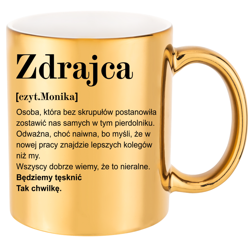 ZŁOTY KUBEK dla ZDRAJCY POŻEGNANIE ODEJŚCIE KOLEŻANKI KOLEGI Z PRACY + IMIĘ