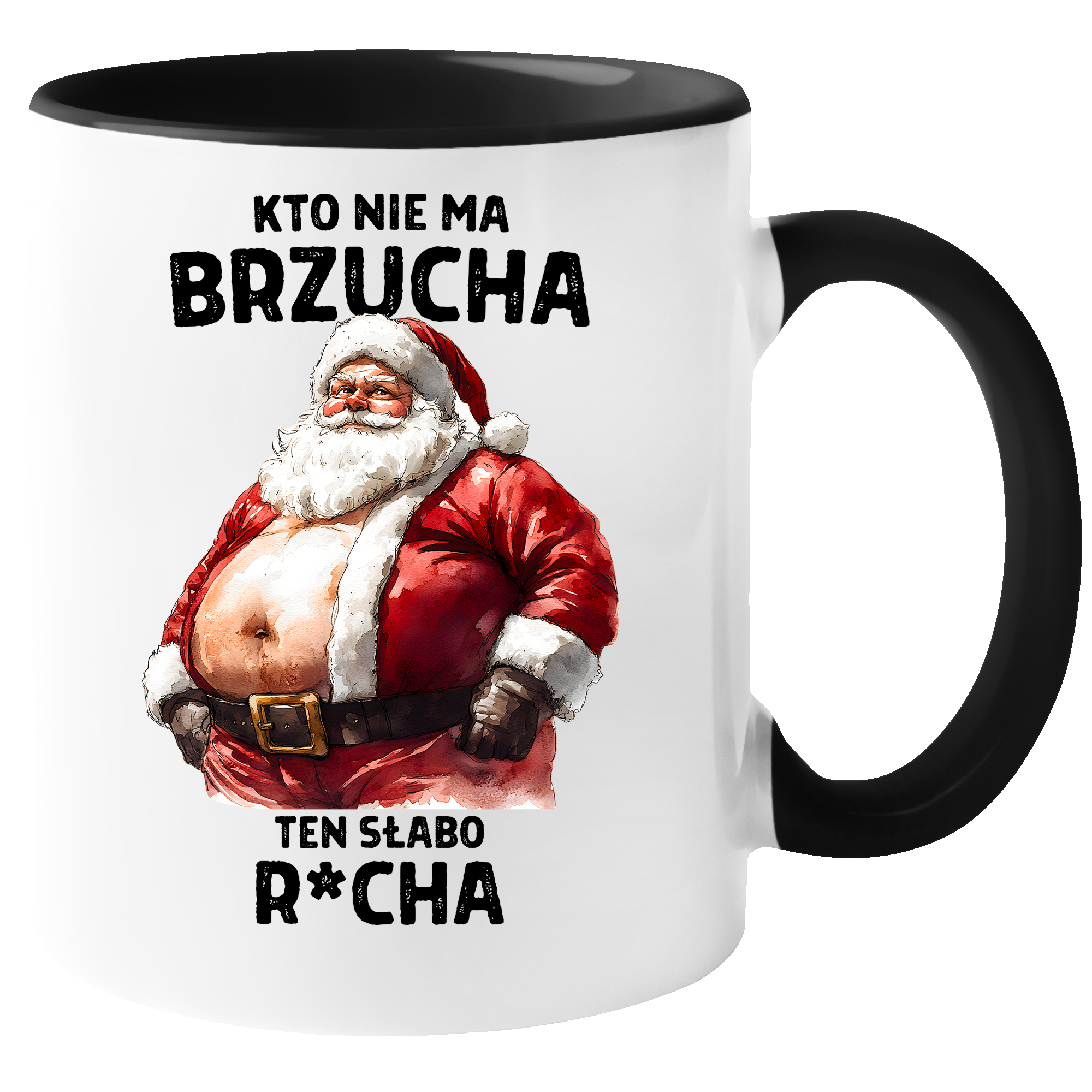 zabawny KUBEK PREZENT na ŚWIĘTA KTO NIE MA BRZUCHA TEN SŁABO RUCHA 330ml + OPAKOWANIE
